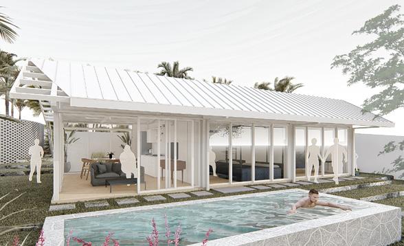 This effect features how the structural elements can be consistent with the purlins of the roof. Moreover, since the project has a limited budget, the space is utilized by incorporating light and ventilation to avoid letting the guest feel constricted.