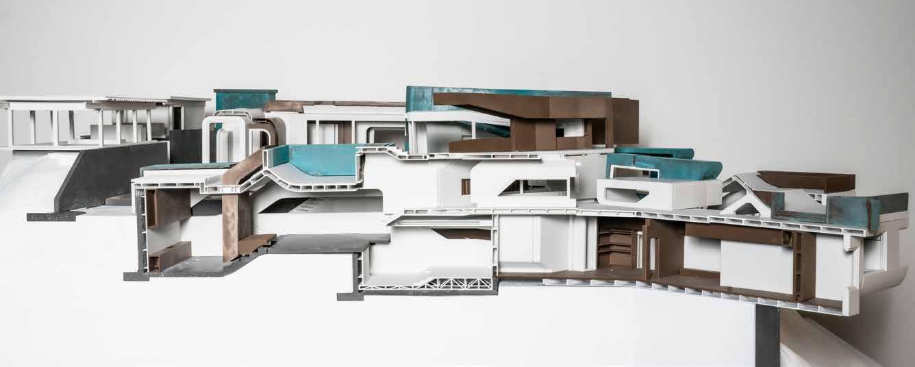 The natural topography informs the project’s geometry, generating forms inspired by earlier puzzle studies (as seen on page 7). These cascading elements create a series of cantilevered volumes that respond directly to the terrain.