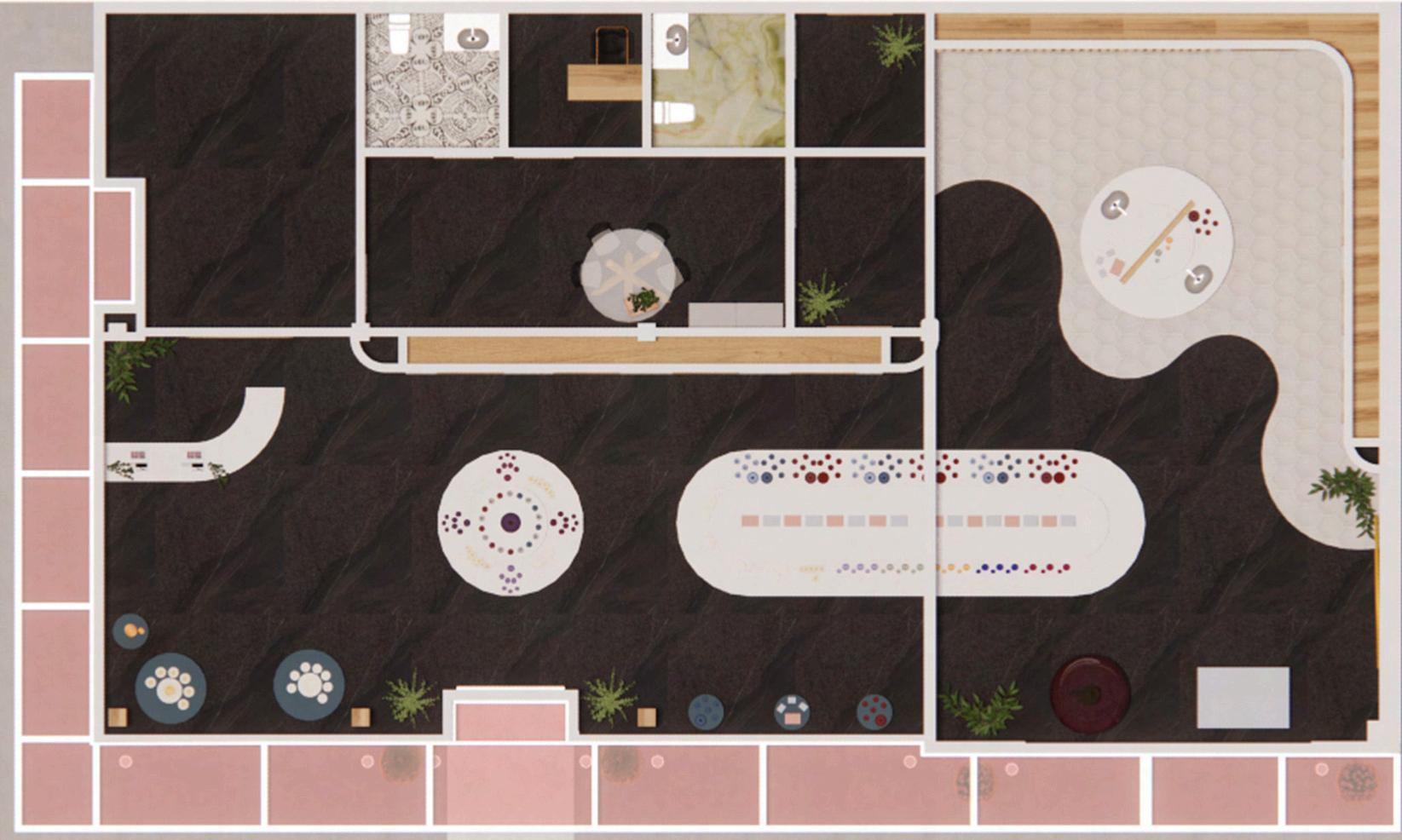 Starting with bubble diagrams I looked at how the store could be centred around the displays and circulation those needed. Staff areas, storage, washrooms, and then checkout and entrance being pushed to the sides.