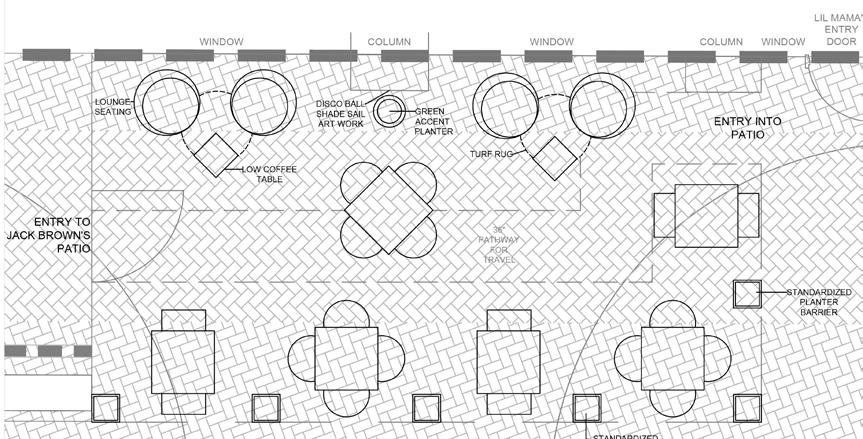 NEEDS // FURNITURE PACKAGE WITHIN BUDGET OF THE CITY’S GRANT TO EXTEND THE DINING SPACE. LIGHT-WEIGHT MOVEABLE FURNITURE. BARRIER TO ENCLOSE SPACE WITH ALCOHOL SALES. DINING TABLES AND CHAIRS FOR EATING.