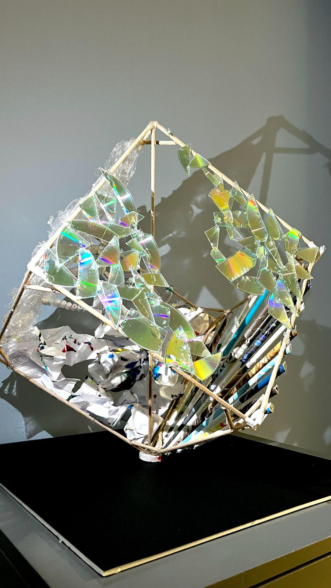 Using only waste materials, we were required to create an abstract cube sculpture.