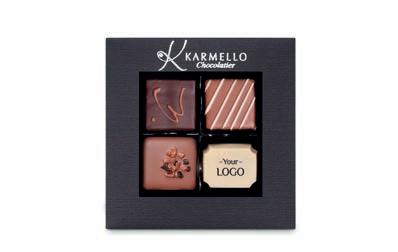 6. Wszystkie opakowania naszych produktów sygnowane są logotypem Karmello Chocolatier i nie ma możliwości usunięcia tego logotypu z żadnego opakowania.