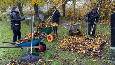 Soulfriends samlar löv i prästgårdsparken för att göra fina konstverk till kyrkan.
