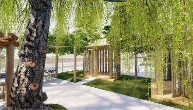 FLOODRESILIENTPARK BOARDWALK FLOWERVALLEY LOTUSPOND ทางเดินขามไปยังพื้นที่ดานบน เปนเสนทางสำหรับสำรวจธรรมชาติและระบบนิเวศพื้นที่ชุมน้ำ สามารถปนจักรยานขามได 02