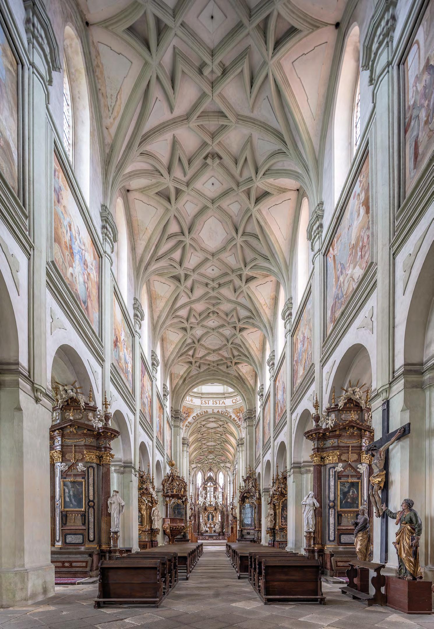 Klášterní kostel v Kladrubech, celkový pohled hlavní lodí k oltáři. Foto Martin Micka.