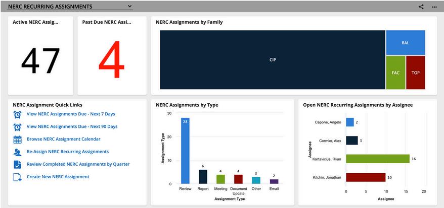 Karta’s NERC Compliance Management solution includes dashboards to help you visualize new and updated standards for your planning and preparation Use these dashboards to see: