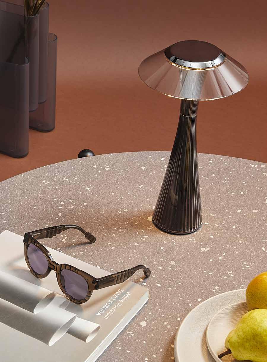 Lights that evoke emotion, capable of creating unique atmospheres and defining the character of environments. Lights that illuminate but can do much more, creating complex games of transparency like in the Kabuki lamp or special reflections like in the Planet lamp. Lights that amaze, thanks to their technology like Angelo Stone or the curves and volumes that are unprecedented and surprising, experimented in the new Teresa lamp.