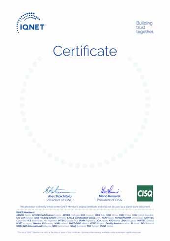 A guarantor for this certification process is the I.I.P. (Italian Institute of Plastics), which is itself accredited by SINCERT and CISQ, the Italian federation of accreditation bodies for Quality Management Systems. CISQ is part of IQNET (International Certification Network), a supranational body which guarantees mutual recognition of the ISO standard in countries worldwide.