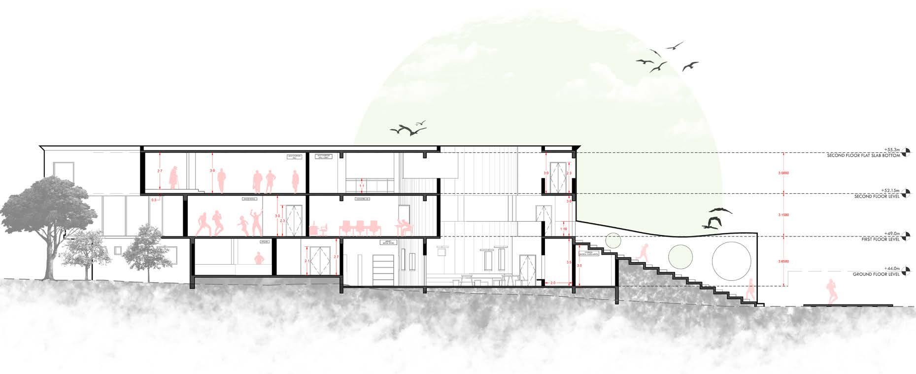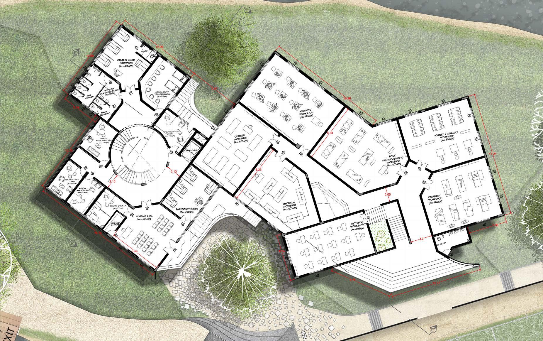 As the contour of 6m height gives the advantage for following the Hierarchy which makes the zoning placement on hight point of the contour. The correctional officers’ admin block placed in the Zone-1 with the watch tower on that height for the surveillance the juvenile.