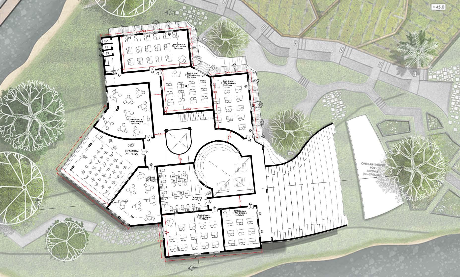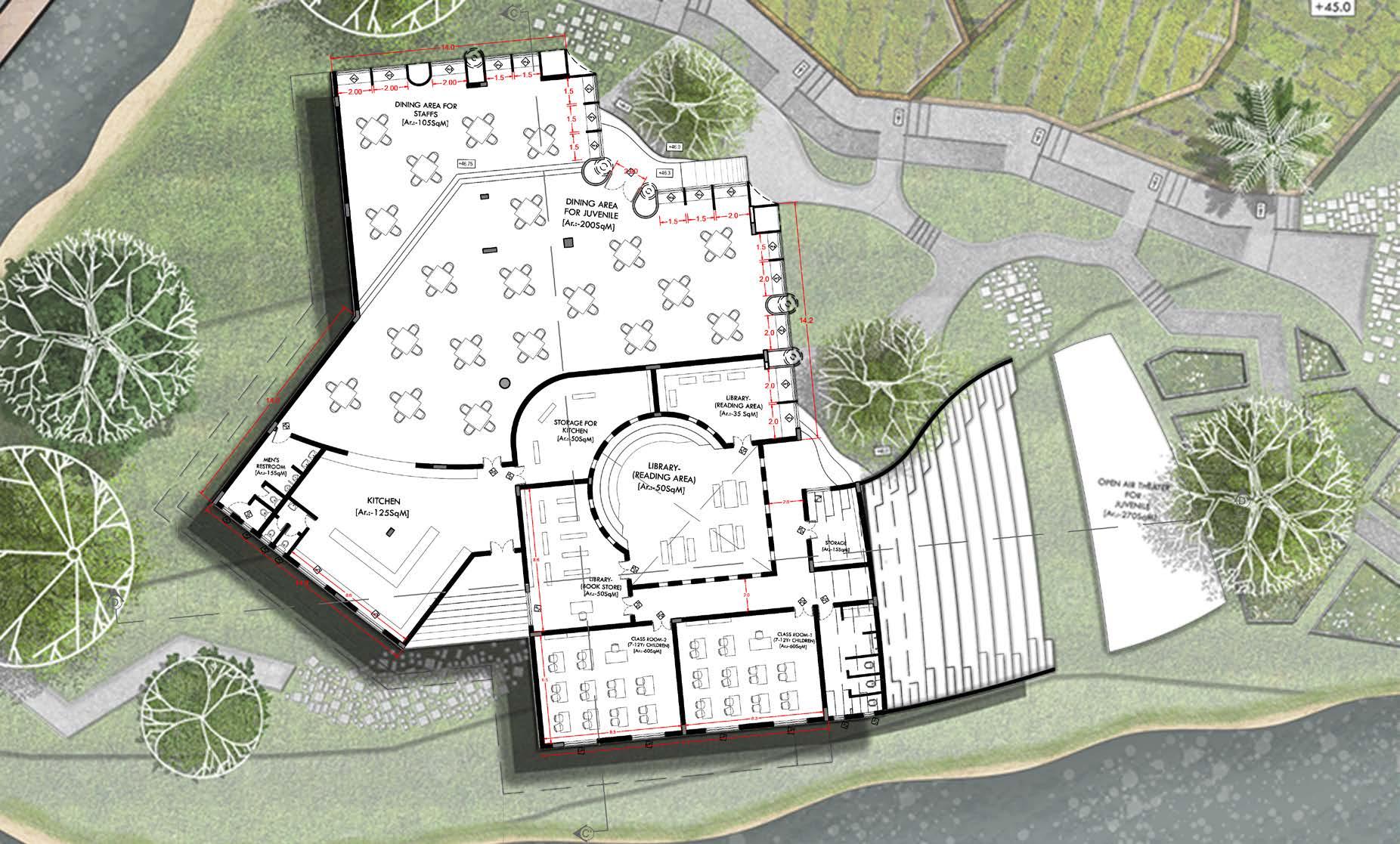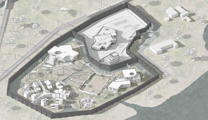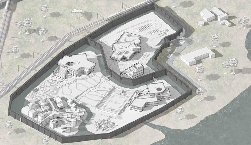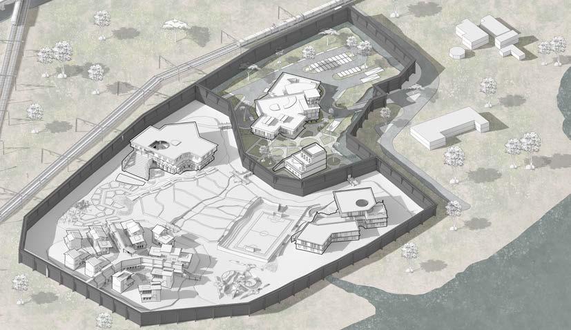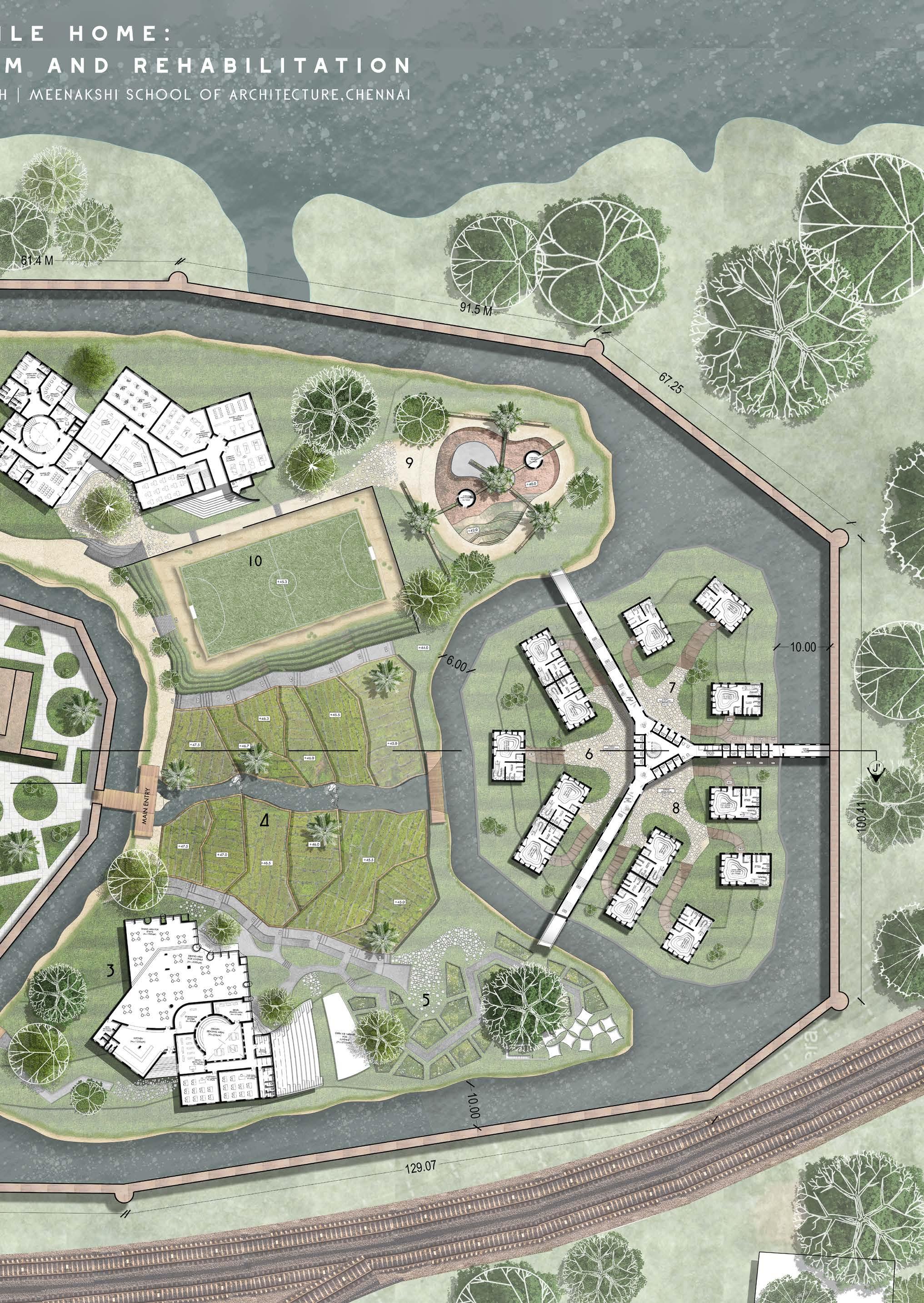 The zonning of three different juvenile homes will be placed according to the site contour lowest point that makes correctional officers to watch them from admin-watch tower and schools and recreational spaces are located between admin area and residential area of juvenile