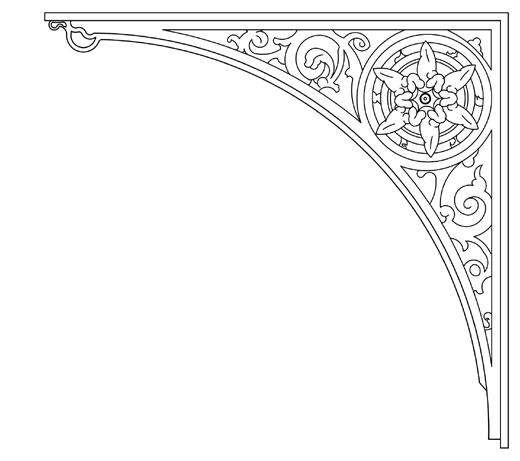 The iron jutting from the wall carries a super incumbent weight. The bracket is made of glassgow iron as an aesthetic element on the east wing balcony. It is detailed in order to decipher a royal facade
