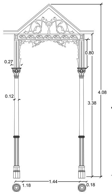 The Column was inspired from Greek Corinthian order. The capital has acanthus leafs on all the sides, volute and boss which are made up of Iron rather than traditional brick or concrete.