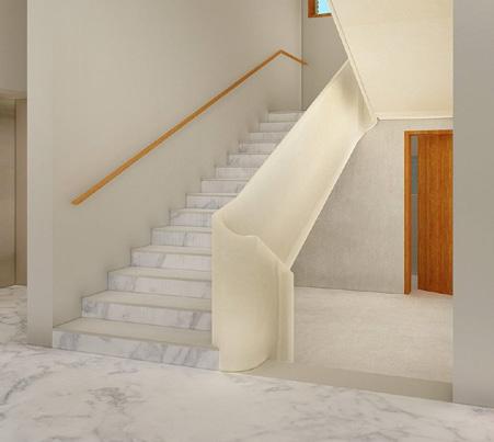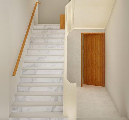 9" BRICK WALL WHITE MARBLE TREAD PROJECTED BY (34") FROM RISER EDGE WITH BULLNOSE NOSING [AS PER ARCHITECTURE DETAIL]