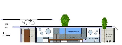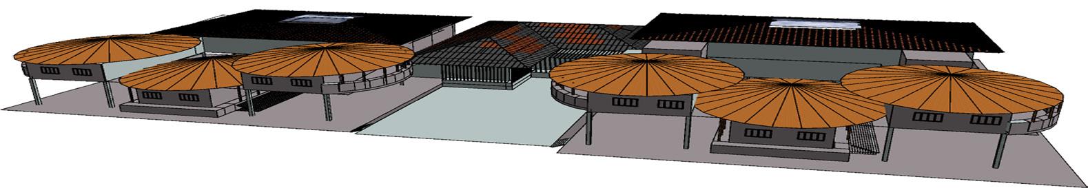 The fine arts block is planned to replicate the organic curves of contour in the roof that extends to shade east and south east sides.