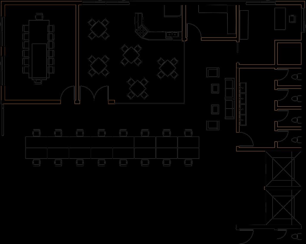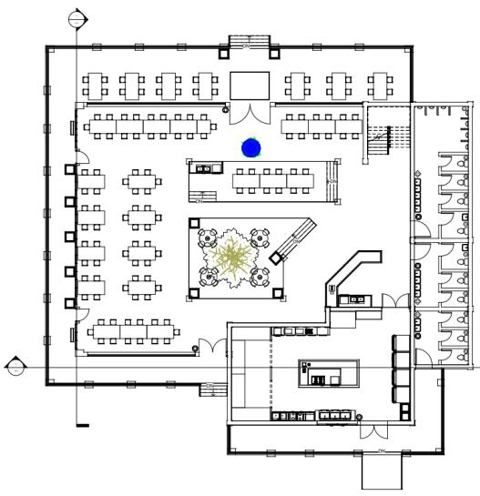 SECOND FLOOR: OFFICE SPACE (SCALE 1:100)