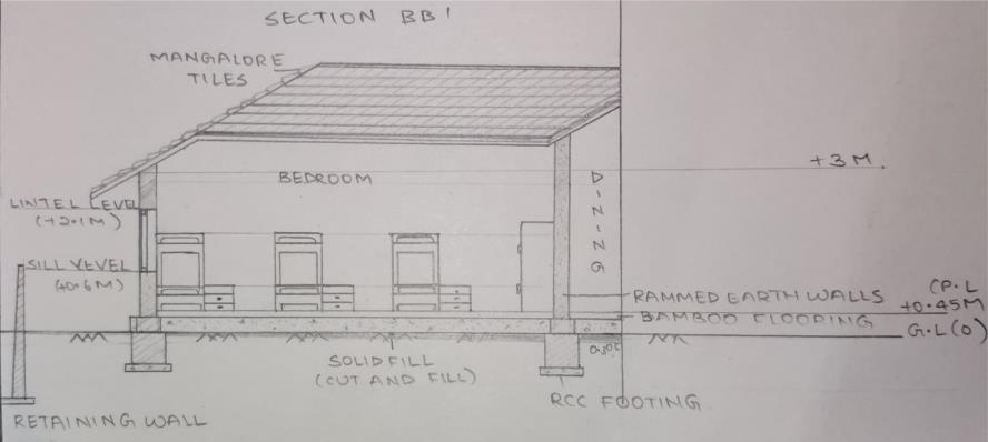 • THERMAL COMFORT IS GUARANTEED, THE COOLING EFFECT IS ENHANCED BY THE USAGE OF MANGLORE TILES ROOF, ANDHRA KADAPPA FLOOR, LARGE WINDOWS, ETC.