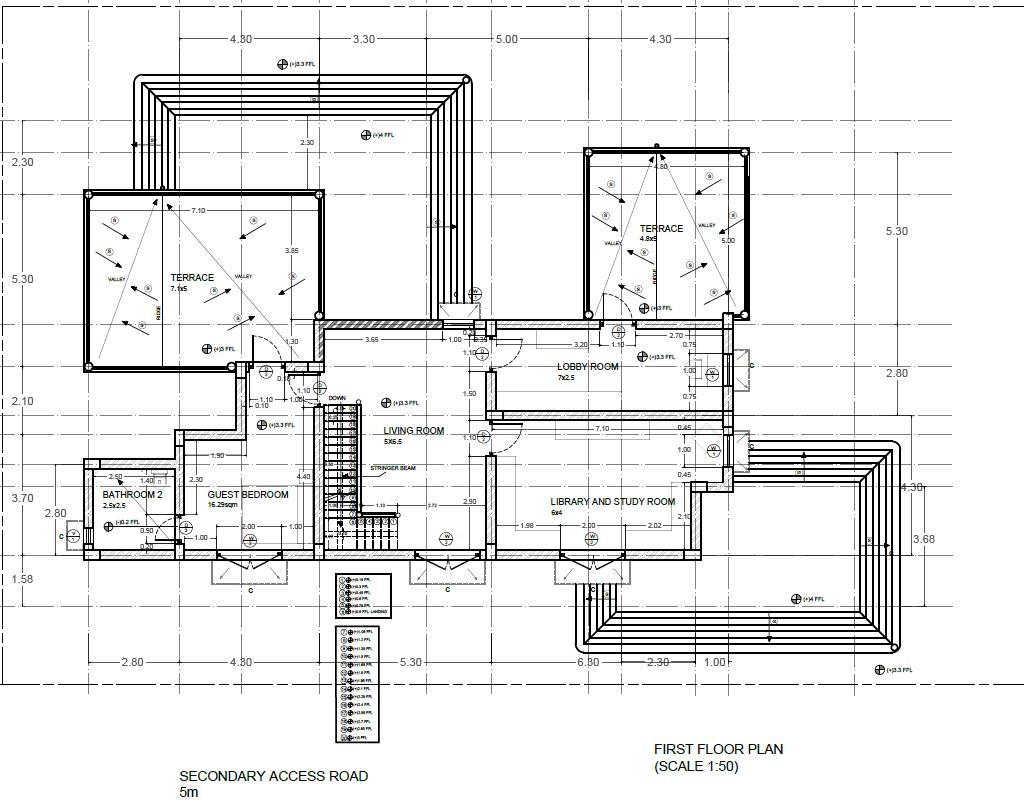 COMMERCIAL FIRST FLOOR: COURT (SCALE 1:100)
