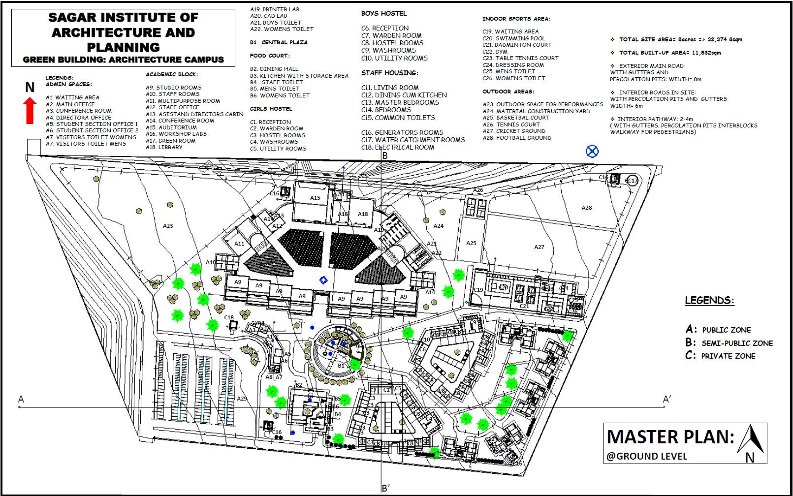 DUE TO THE USAGE OF COURTYARD IN THE INTERIOR OF BLOCKS, THE STUDENTS CAN USE THE SPACE AS GATHERING SPACES WITHIN