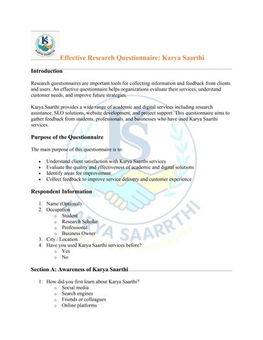 Effective Research Questionnaire