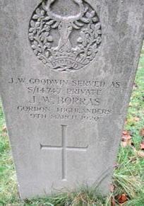In Belper Cemetery I found the grave of a First World War soldier commemorated by the Commonwealth War Graves Commission, J W Goodwin, who served in the Gordon Highlanders under the alias of Borras.