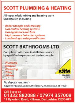 Plastering: Claxton Plastering 49 Plastering: JM Plastering & Property Maintenance 53 Plastering: McPherson-Davis 46 Plumbing & Heating: Blacks 53 Plumbing & Heating: CB 64 Plumbing & Heating: Dervale Maintenance 46 Plumbing & Heating: LEEVA Plumbing & Heating 71 Plumbing & Heating: Martyn Young Heating & Plumbing 68 Plumbing & Heating: MDA 47 Plumbing & Heating: R Fearn 52 Plumbing & Heating: Scott 54 Plumbing & Heating: Woodward 67 Properties Wanted for Cash: Ethical Property Partners 38 Property Maintenance: 3Sixty Property Solutions 50 Property Maintenance: David Grey 73 Property Maintenance: JM Plastering & Property Maintenance 53 Property Maintenance: Kev Property Services 64 Public House: The Coach at Horsley 23 Public House: The Sitwell Arms 22