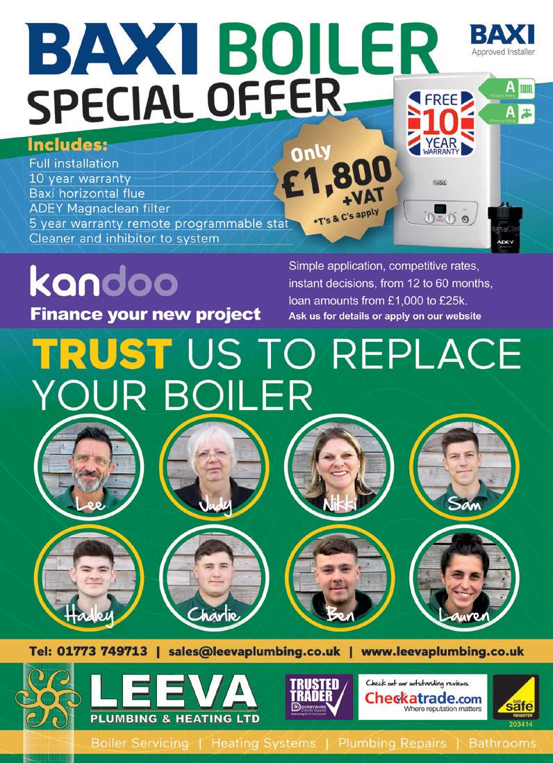 Plumbing & Heating: Belper Plumbing & Heating 55 Plumbing & Heating: CB 44 Plumbing & Heating: Dervale Maintenance 56 Plumbing & Heating: LEEVA Plumbing & Heating 58 Plumbing & Heating: MDA 50 Plumbing & Heating: Richard Fearn 56 Plumbing & Heating: Woodward 50 Properties Wanted for Cash: Ethical Property Partners 64