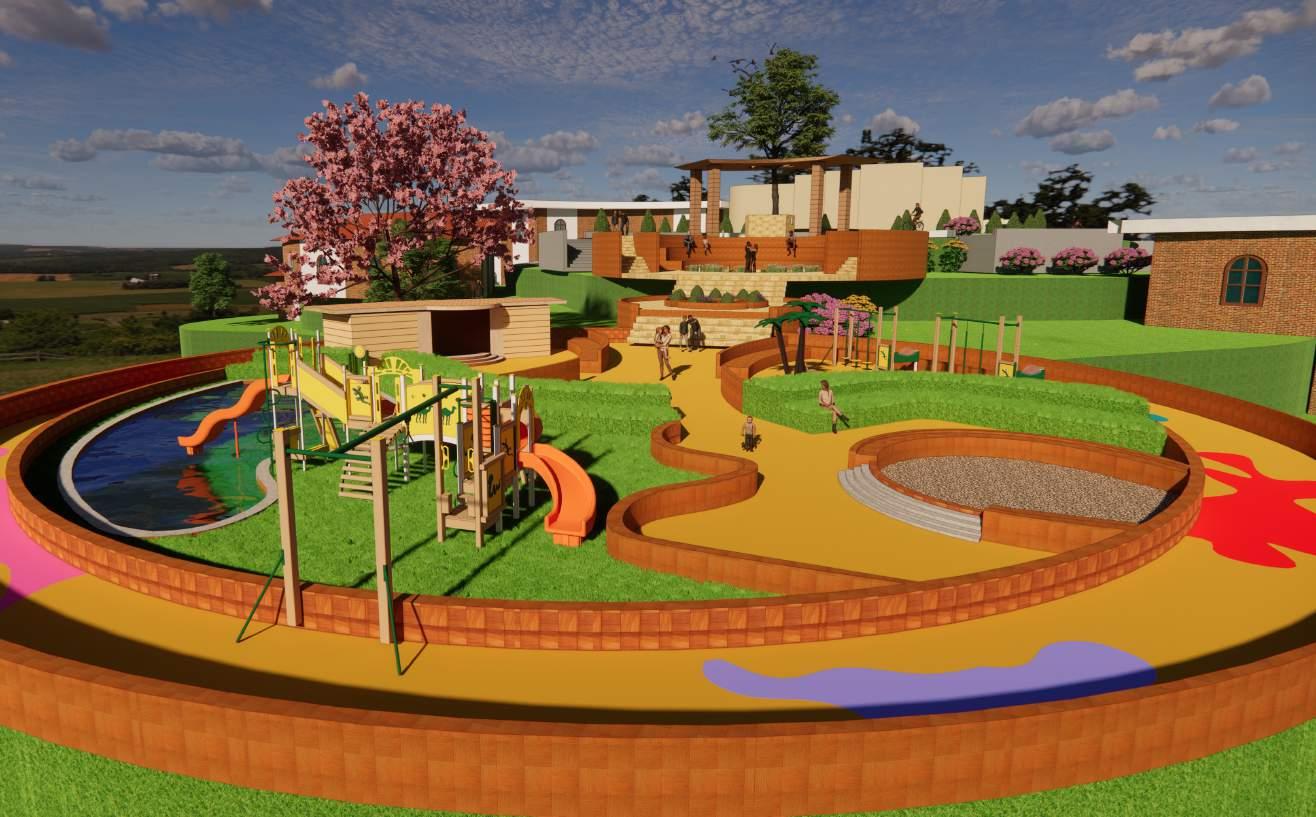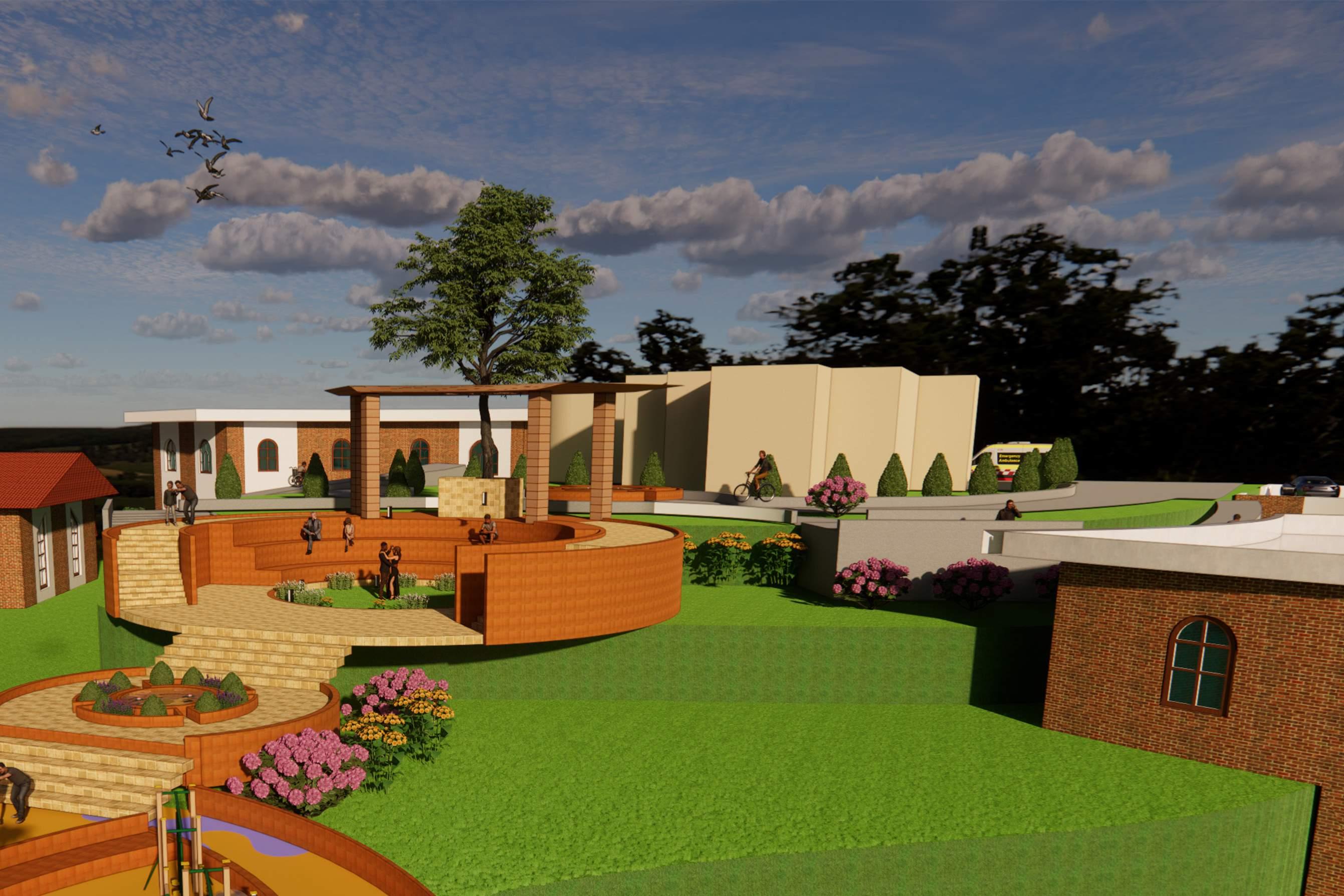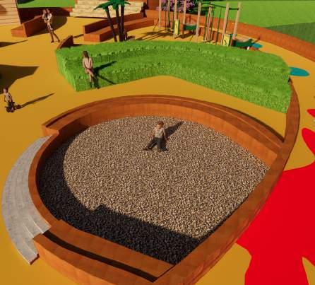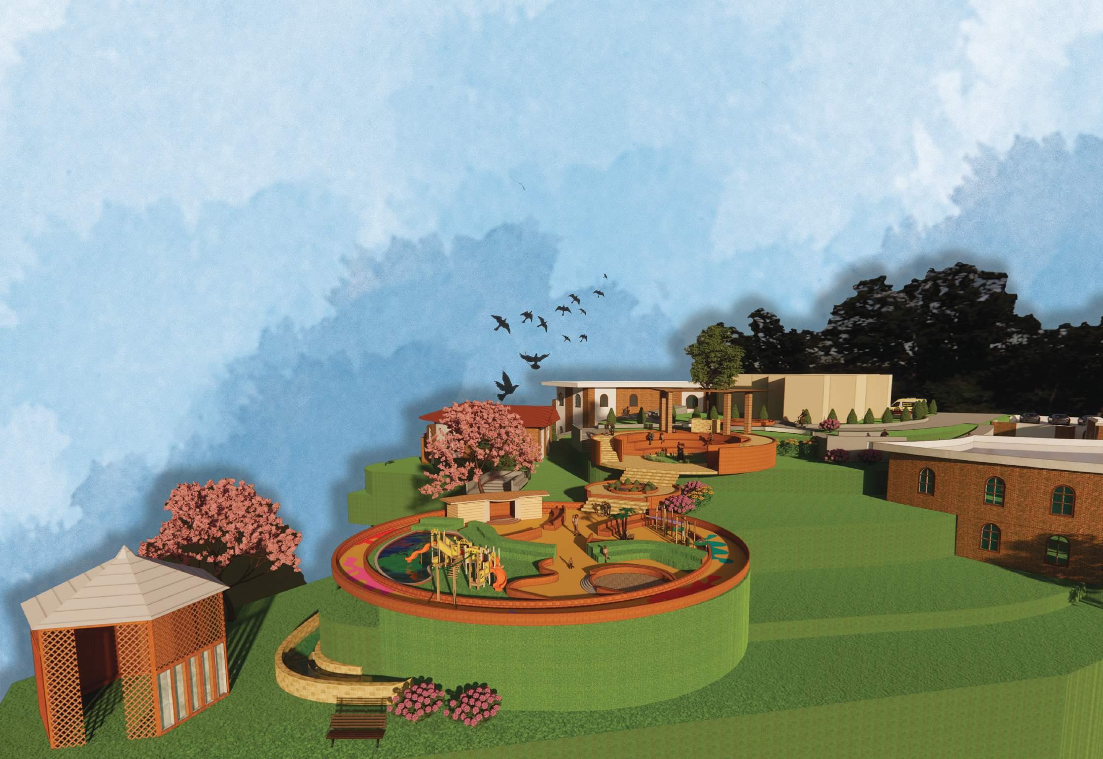 CIRCULAR PATHWAY AS WELL AS CHILDREN'S PARK IS ADDED ALONG WITH RAMPS & STAIRS FOR CIRCULATION