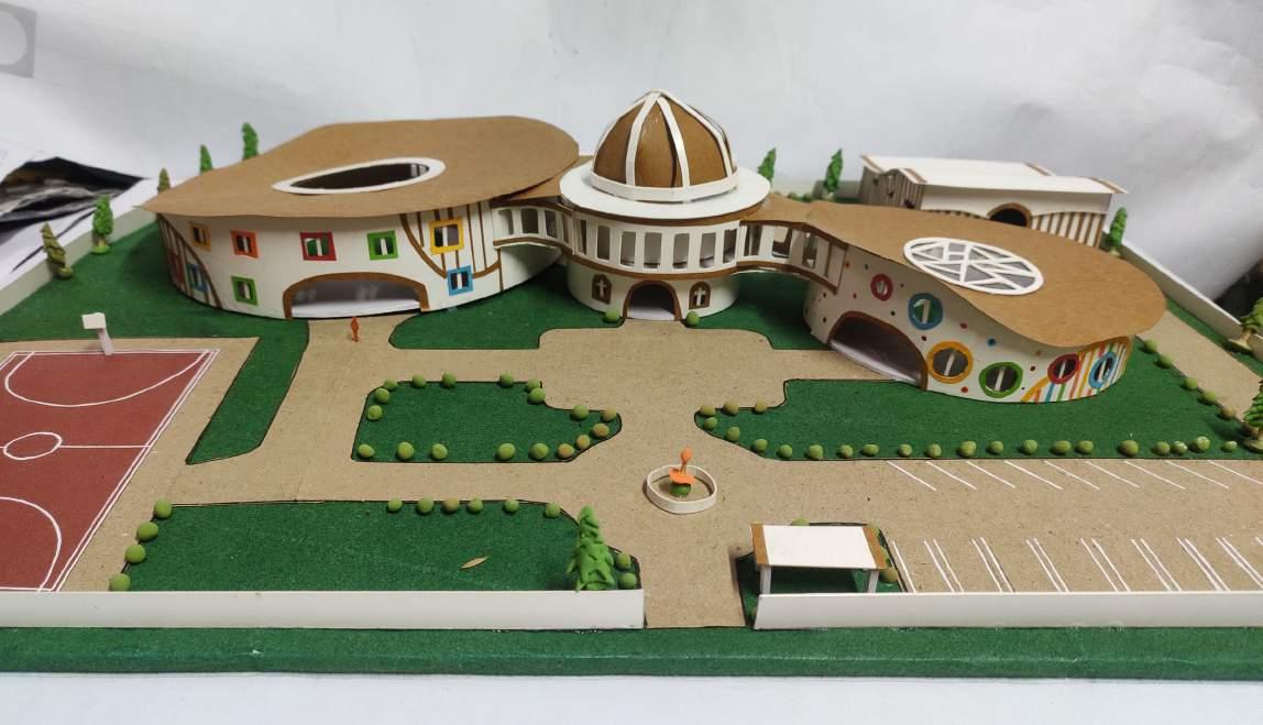 ". Creating school with playful atmosphere to engage the children's and enjoy school time. It is done by using primary colors & circular shaped windows that provide adequate amount of daylight into the classrooms avoing glares.