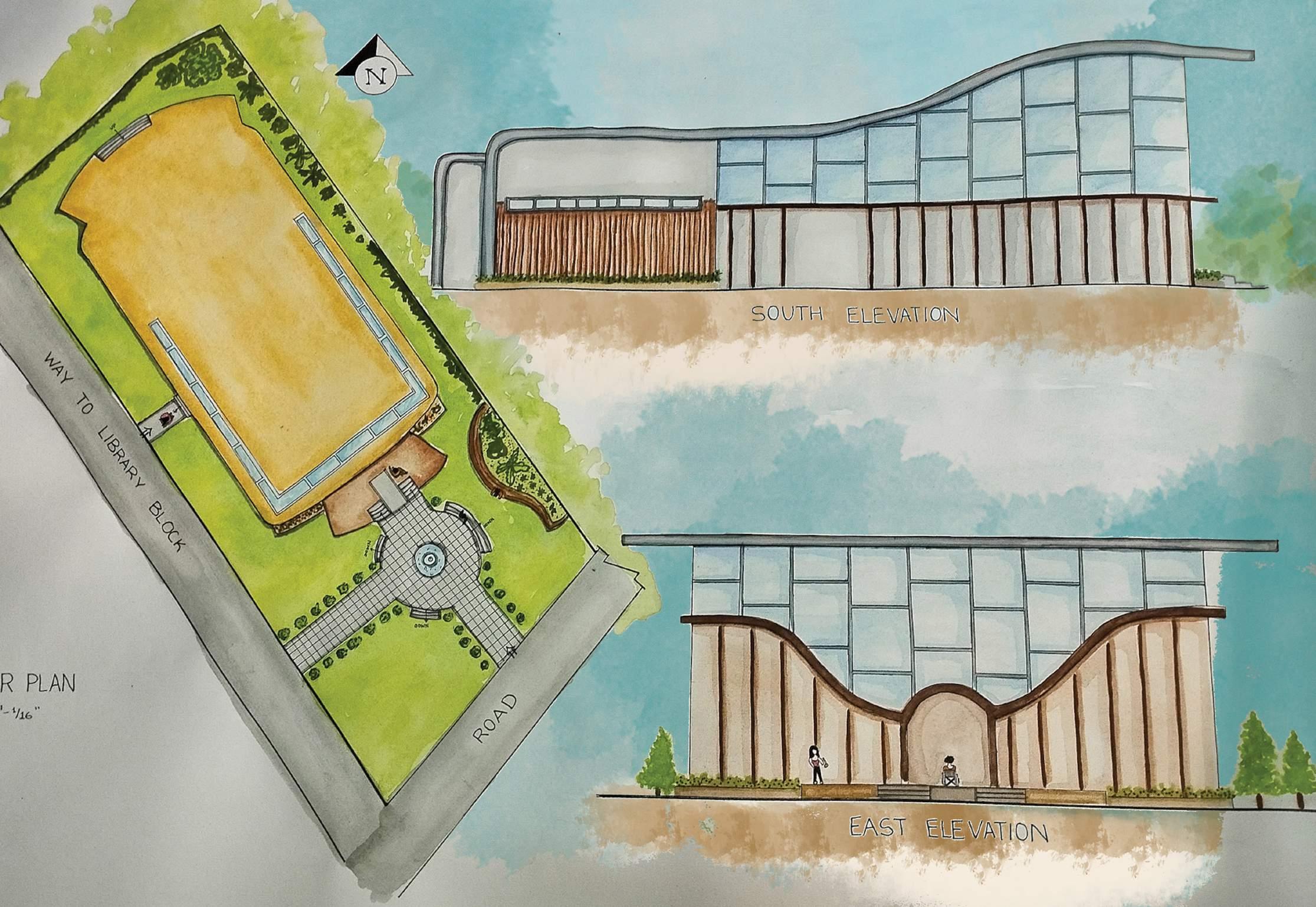 The hall is designed for various activities like indoor game events , seminars , parties , meetings , different programs etc.It is designed by keeping the functionality , social sustainability , aesthetic , needs and requirement of the people. It was designed to accomodate 200 - 300 people .