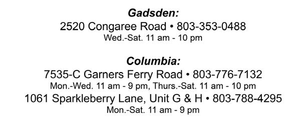 Hours: Mon-Sat 11:00 am - 9:00 pm, Sun 11:00 am - 2:30 pm
