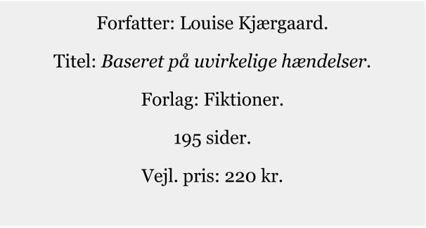 Jeg har modtaget et anmeldereksemplar fra forlaget Fiktioner af Baseret på uvirkelige hændelser. At læse den ramler for mig tæt sammen med at have besøgt forlaget Turbine, som del af introdagene til kandidatuddannelsen i litteraturhistorie, hvor vi hørte om skønlitteratur- afdelingen på forlaget. Kort efter blev skønlitteraturafdelingen nedlagt. Det kunne ikke betale sig at udgive skønlitteratur.