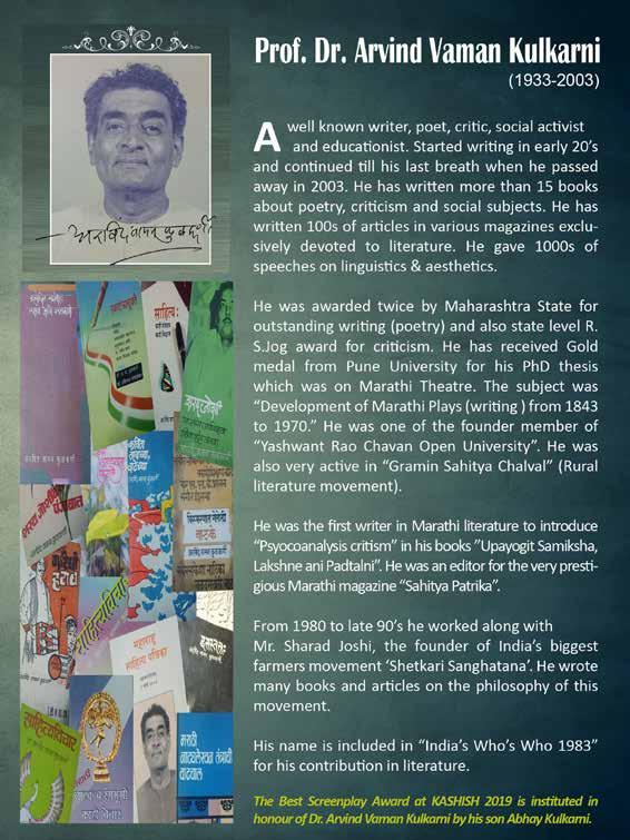 All the films in all the above 3 categories are eligible to compete for the Best Screenplay Award. It carries a KASHISH Golden Butterfly Trophy and a cash prize of Rs.25,000 instituted in the memory of distinguished Marathi scholar and writer Dr. Arvind Vaman Kulkarni. The award is instituted by his son, actor Abhay Kulkarni.