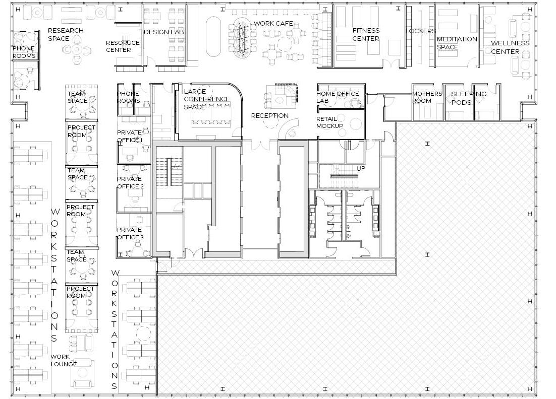 The Work-Place Cafe, was designed to provide a space for employee’s to take a break from their busy workdays. It emphasized connected and collaboration with everyone in the office.