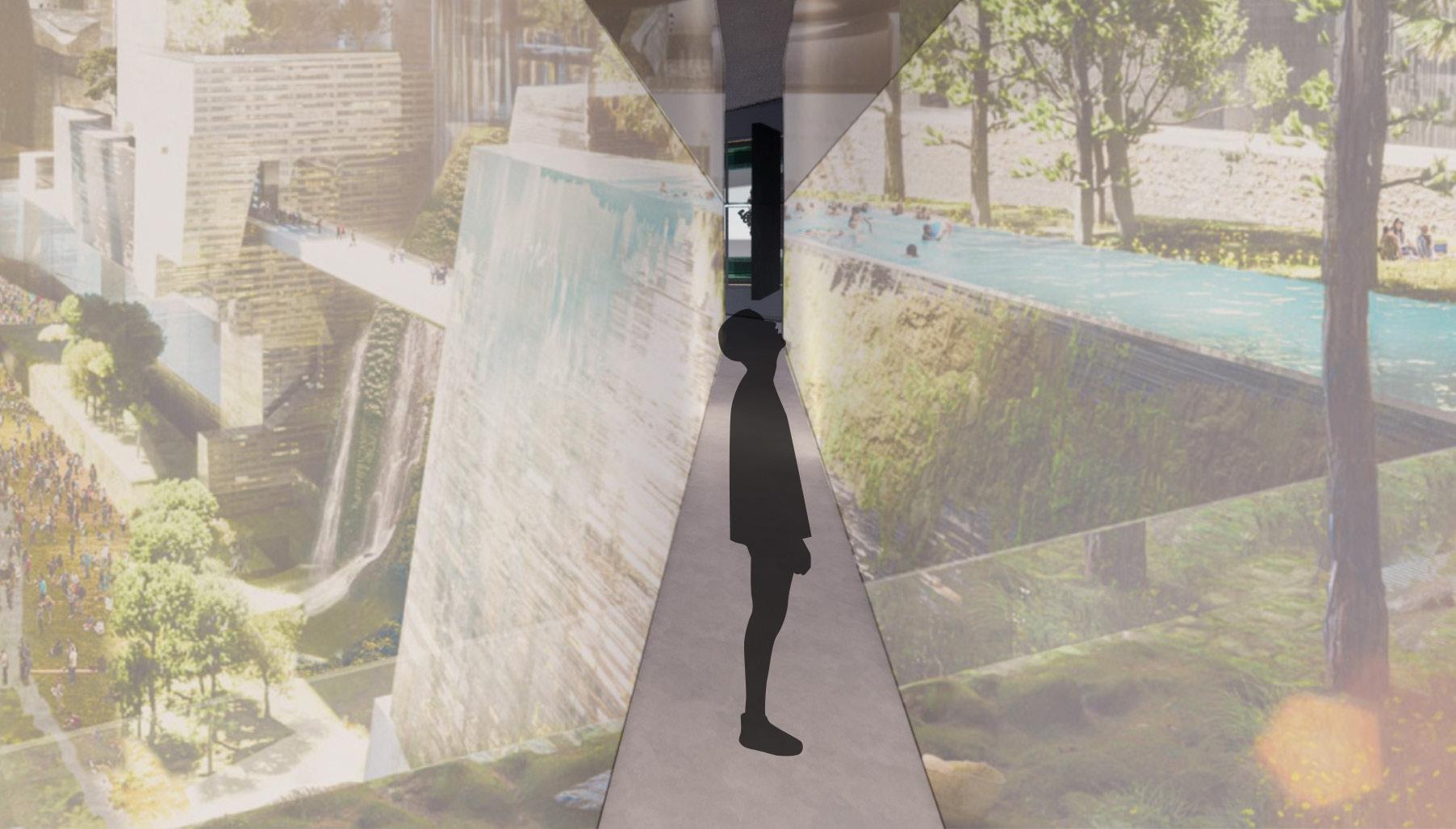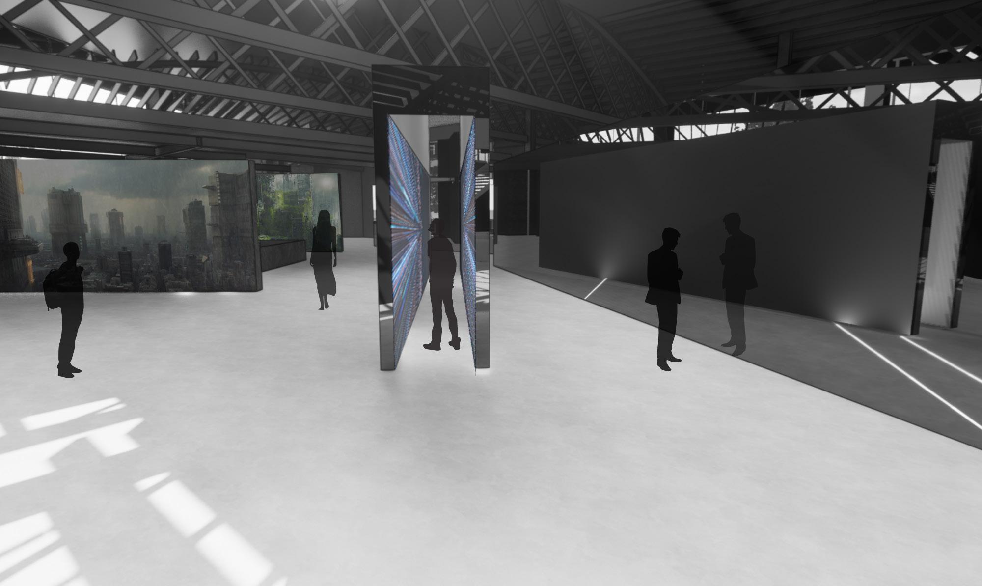 Sections showing the “Futuristic City” exhibit, in the context of the gallery space. Show’s how users are interacting within the space.