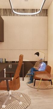 Rendering showing the “Mock” Home- Office. This space was designed for NEXT to showcase thier newest products.