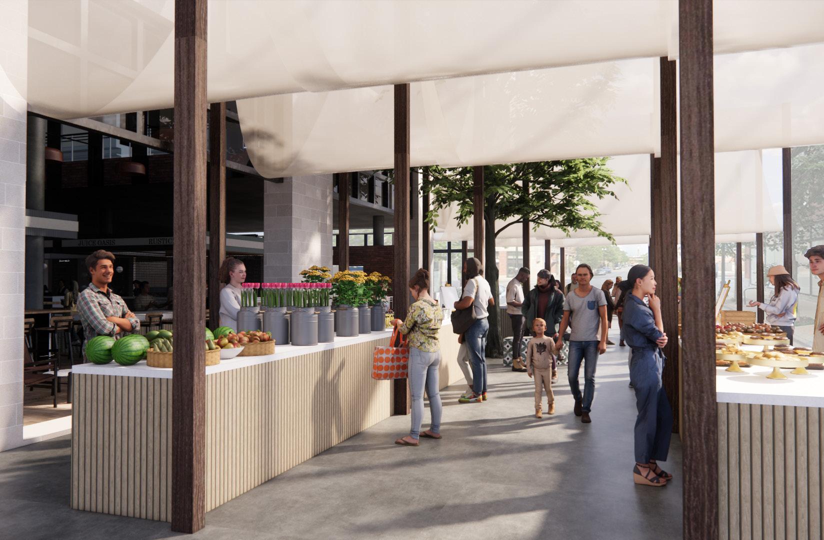 The Coffee Bar offers a welcoming space for users to pause, enjoy a coffee, and recharge. It’s a place where people can gather and socialize in a relaxed atmosphere within the busy market.