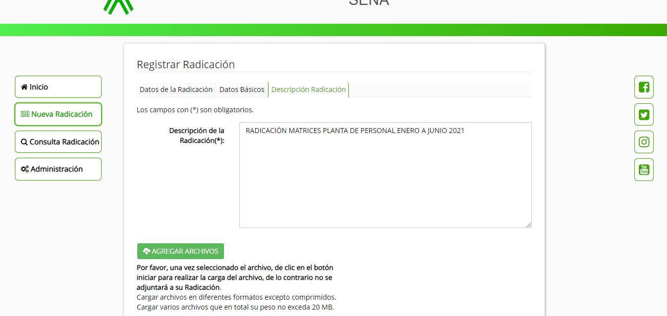 Digite todos los datos de la radicación que solicitan, recuerde llenar todos los campos