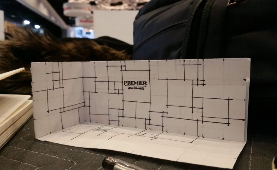 When i was working Premier Kitchen & Bath I got the chance to be part of the 2019 Winnipeg renovation show that was held in RBC convention center, Winnipeg. Premier company was the one that takes the responsibility to design the lounge area and I assigned on this project. Then i come up with simple lines and light colors graphics that uses the Fibonacci sequence. Those graphical geometries they extend from the wall and merges with the floor. Even if the wall material and floor different in color and texture this graphical peters creates harmony.