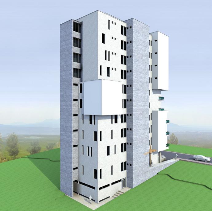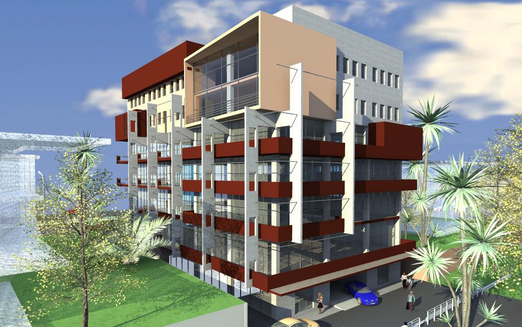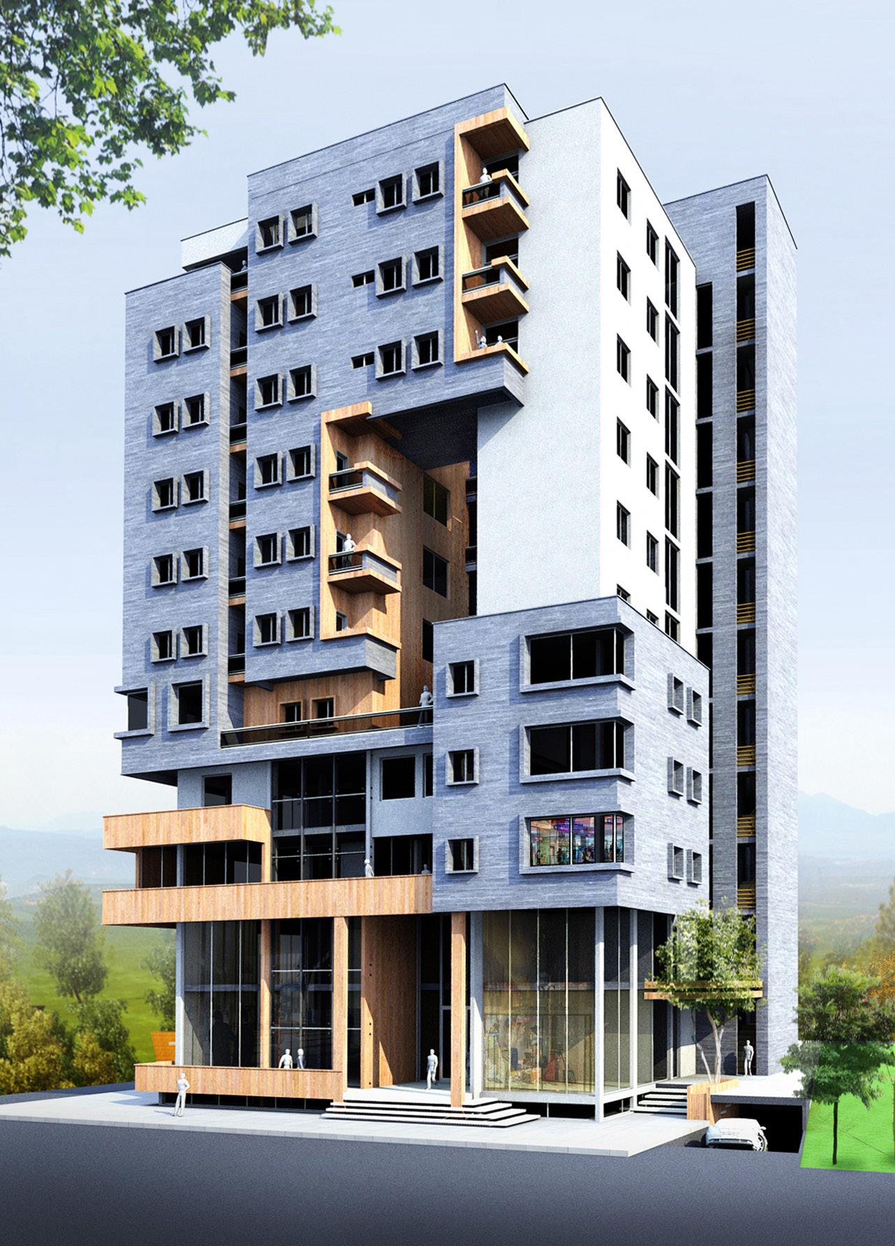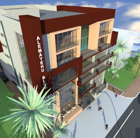 This project located in Addis Ababa, Ethiopia and has a plot area of 446 m2. I design this building to a modern look with efficient space usage. It has a total of 9 floors with 2 basements. The semi basement is used for parking and below that for storage. The floors are arranged by zooning different activates in the building. The ground floor up to third floor is for Cafeteria/ Restaurant and shops, fourth and fifth floor are for office purpose and the rest floors, which are sixth up to ninth, are used for residential units.
