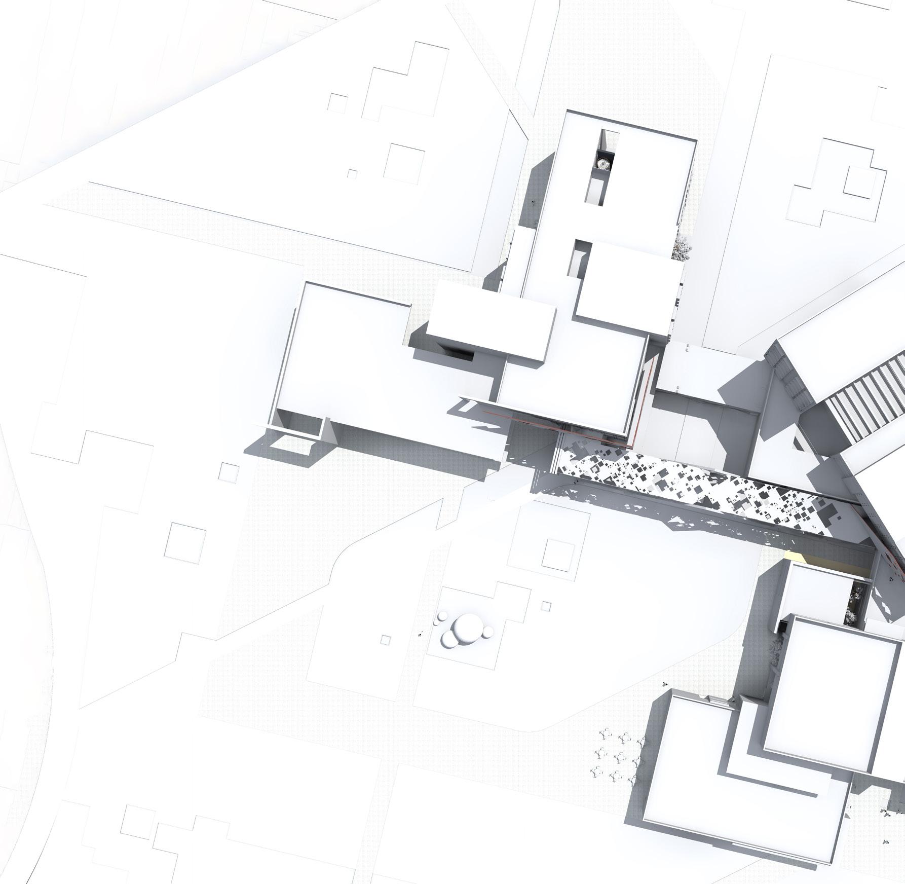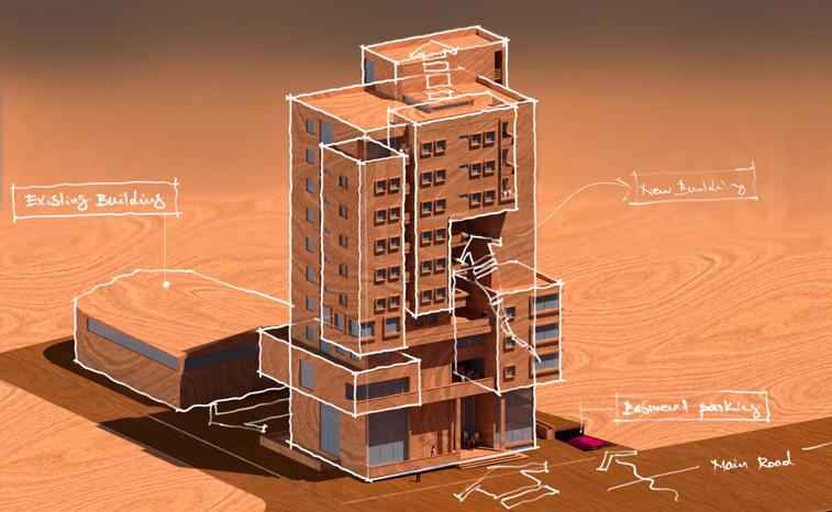 The design gets changed at the end due to the client request to use those void space for shops and additional rooms for the resident units.