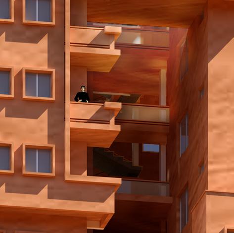 The open down helps the units to get the maximum perimeter for natural light exposure and most importantly for natural ventilation from the wind that comes inside the building through the void space that created in the design process.