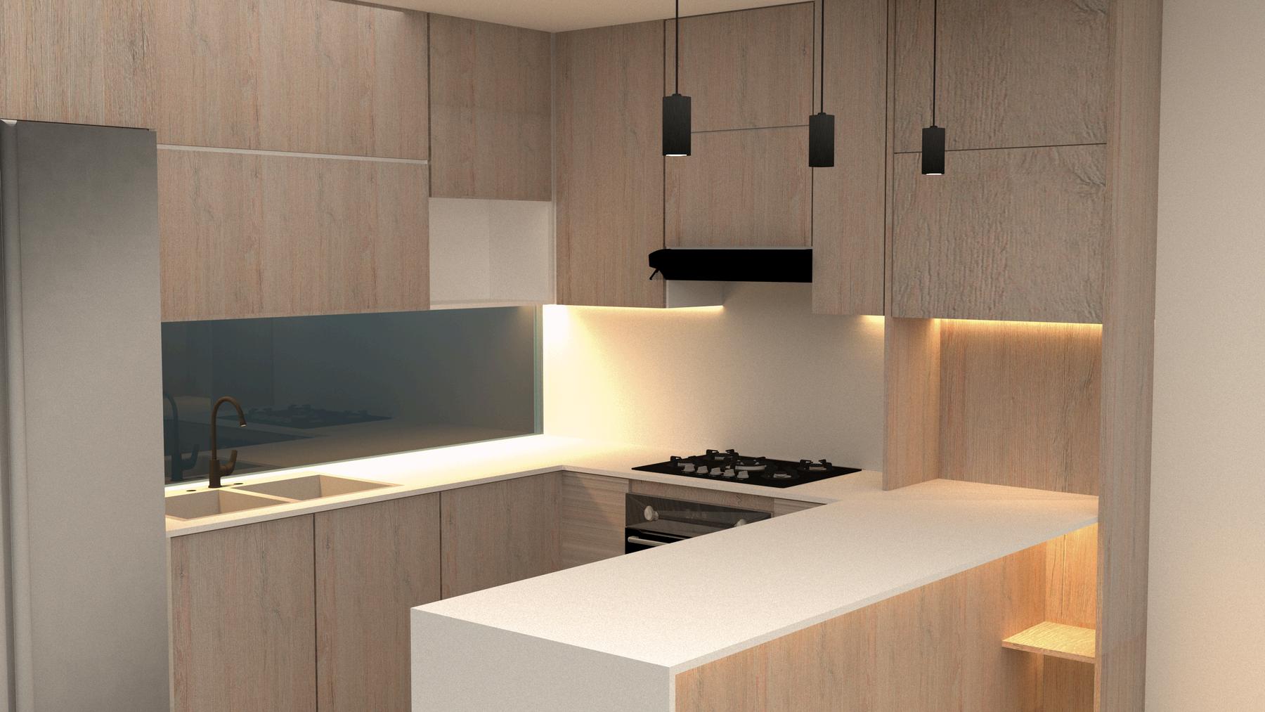 Elaboración de diseño de cocina, baño principal, y baño de visitas para nuevos departamentos en Santiago de Surco