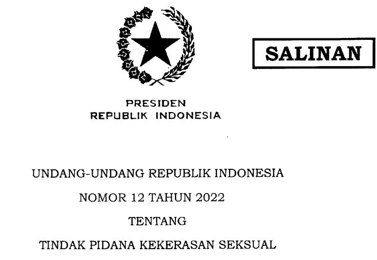 Undang-Undang Republik Indonesia Nomor 12 Tahun 2022 Tentang Tindak Pidana Kekerasan Seksual