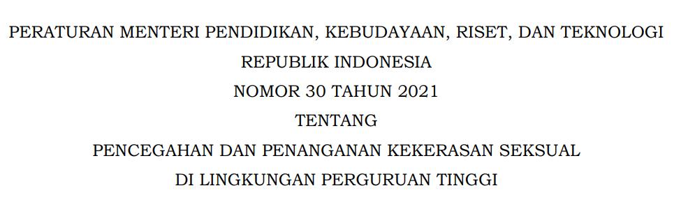 Selain itu, Permendikbud Ristek No 30