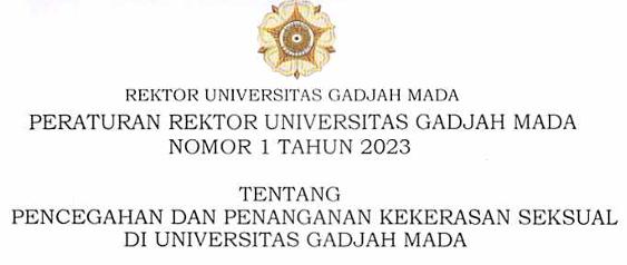 Peraturan Rektor Universitas Gadjah Mada Nomor 1 Tahun 2023 Tentang Pencegahan dan Penanganan Kekerasan Seksual di Universitas Gadjah Mada https://merdekadarikekerasan.kemdikbud.go.id/ppks/kekerasan-seksual/
