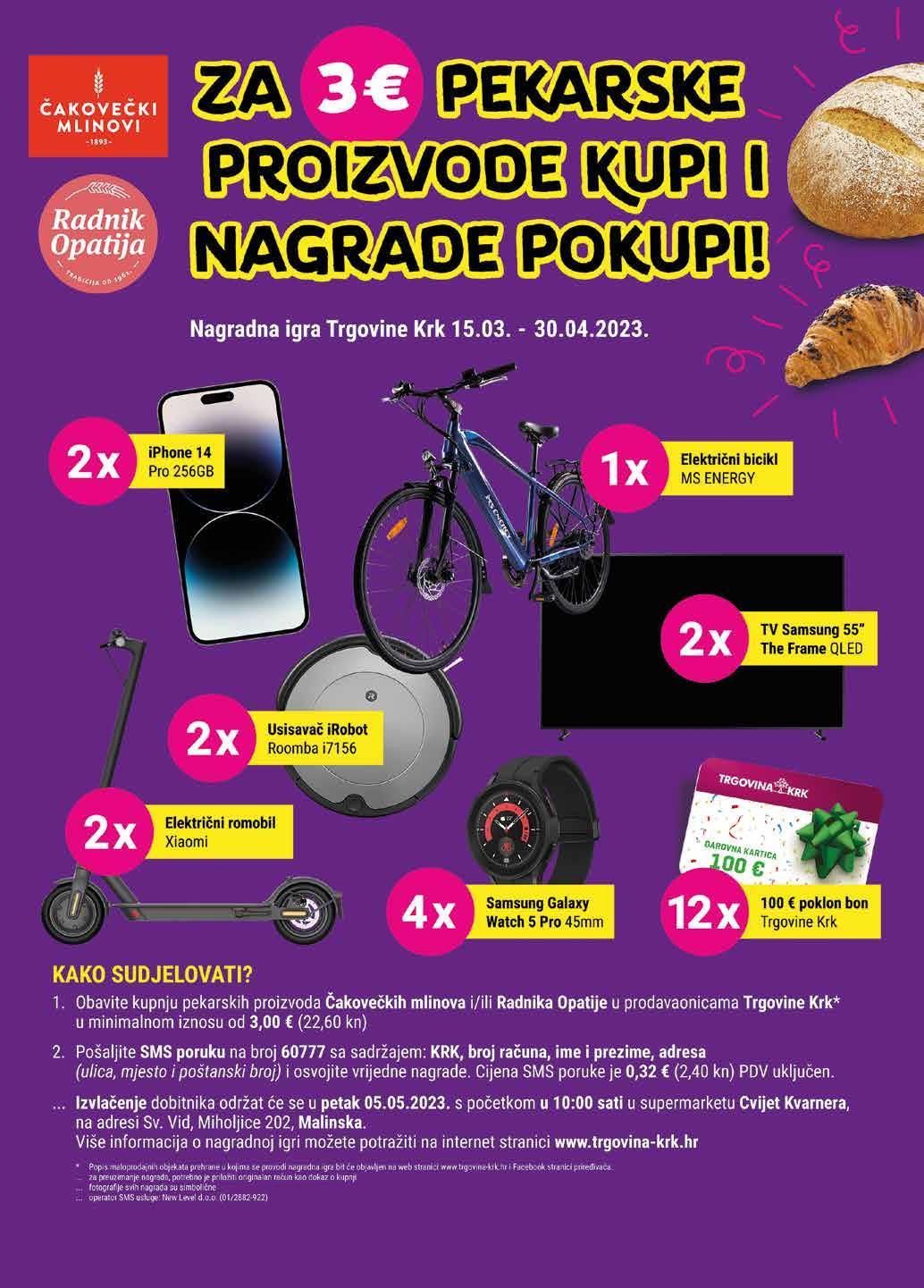 GAVRILOVIĆ Rolana šunka u mrežici GRATIS Svježa jaja razred L 1 € 09 8,21 kn ZAGREBAČKA PIVOVARA Ožujsko pivo 0.5l 1l = 2,18 € / 16,43 kn 1 € 49 11,23 kn Coca-Cola 1.75l 1l = 0,85 € / 6,42 kn 16 € 99 128,01 kn MILENA Bakalar na bijelo rfz 1kg 3 € 59 27,05 kn RADNIK OPATIJA Orehnjača 500g 1kg = 7,18 € / 54,10 kn 5 € 59 42,12 kn 3 € 69 27,80 kn THOMY Majoneza 611g 1kg = 6,04 € / 45,50 kn NTL Svježa jaja razred L 10/1 Mladi luk 1kg 5 € 99 45,13 kn Sir Gouda 1kg Rotkvica 1kg Proizvode iz ponude moguće je kupiti samo u količinama primjerenim za kućanstvo. Mogućnost plaćanja karticama: Maestro, Master Card, Visa Electron, Visa i Diners. Fotografije proizvoda su ilustrativne prirode i ne moraju u potpunosti odgovarati stvarnom izgledu proizvoda. Moguće su nenamjerne tiskarske pogreške, molimo vas za razumijevanje. Zbog ograničenosti prostora pojedini artikli, iz ove ponude, nisu dostupni u svim prodavaonicama. Prema odluci Vijeća Europske unije: 1 eur = 7,53450 kn PONUDA VRIJEDI od četvrtka 30.03. do srijede 12.04. 2023. godine ili do isteka zaliha KATALOG PROIZVODA iz asortimana naših trgovina KATALOG br. 07 / 2023. besplatni primjerak