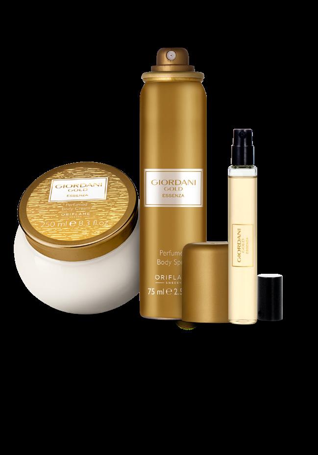 41 Giordani Gold Essenza parfem u putnom pakiranju 8 ml. 42786 10,00 € 5,49 € 75,34 kn 41,36 kn Giordani Gold Essenza dezodorans za tijelo u spreju 75 ml. 42806 7,50 € 4,49 € 56,51 kn 33,83 kn Giordani Gold Essenza parfem 50 ml. 42503 46,00 € 23,99 € 346,59 kn 180,75 kn Giordani Gold Essenza mirisna krema za tijelo 250 ml. 42206 9,00 € 4,49 € 67,81 kn 33,83 kn MAKSIMALNA KONCENTRACIJA MIRISA bergamot iz Kalabrije , raskošna Essenza nota cvijeta naranče , drvo iz Toskane CVJETNO-VODENASTI POKLOPAC OBAVIJEN ZLATNIM DETALJIMA Trenutak zlatnog sjaja koji označava početak nečeg predivnog što inspirira ženu koja ga koristi na prekrasnu transformaciju. LJEPOTA I UMJETNOST ŽIVLJENJA