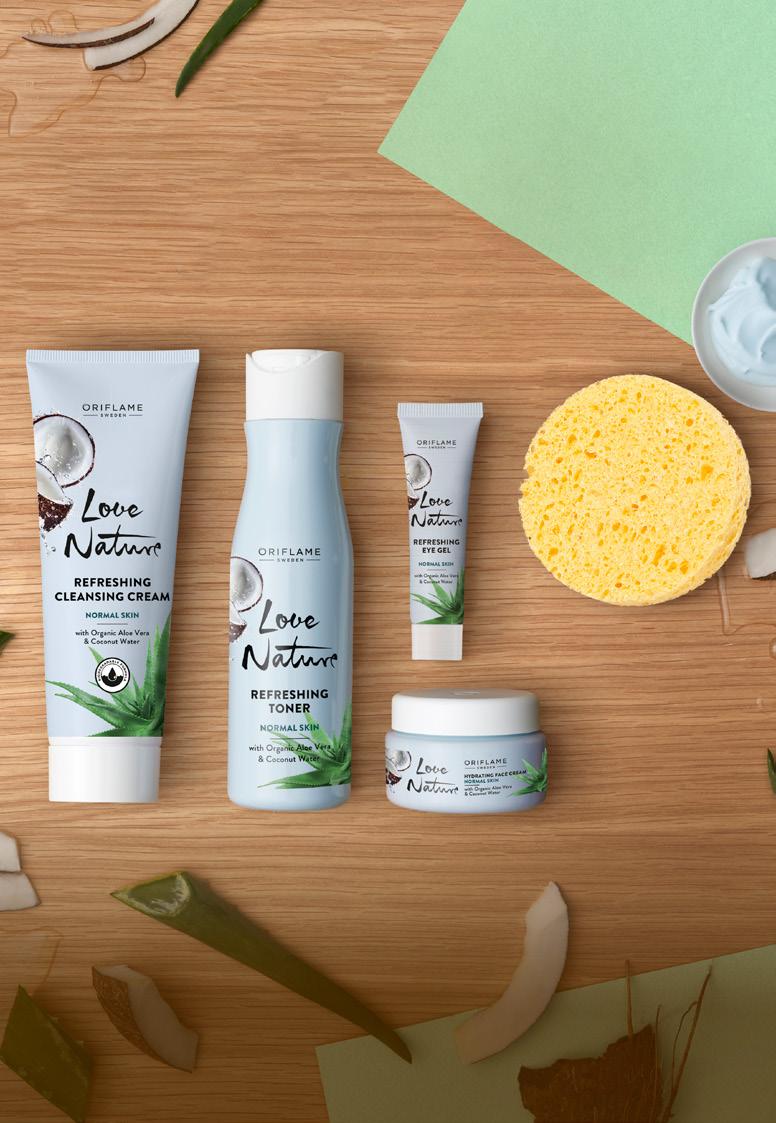 123 Val svježine ČIŠĆENJE TONIZIRANJE NJEGA PODRUČJA OKO OČIJU Za svaku dob ZA NORMALNU KOŽU Zadržite hidratiziranost uz raskošnu kombinaciju organske aloe vere i kokosove vode. Brzo rješenje do prekrasno uravnotežene kože! Love Nature osvježavajuća krema za čišćenje lica s organskom aloe verom i kokosovom vodom 125 ml. 34819 6,50 € 3,79 € 48,97 kn 28,56 kn Love Nature osvježavajući tonik s organskom aloe verom i kokosovom vodom 150 ml. 34820 6,50 € 3,79 € 48,97 kn 28,56 kn Love Nature osvježavajući gel za područje oko očiju s organskom aloe verom i kokosovom vodom 15 ml. 35590 5,50 € 3,49 € 41,44 kn 26,30 kn Love Nature hidratantna krema za lice s organskom aloe verom i kokosovom vodom 50 ml. 34821 6,50 € 3,79 € 48,97 kn 28,56 kn Spužvica za čišćenje lica Veličina: 70 x 10 mm. 8617 2,00 € 1,49 € 15,07 kn 11,23 kn PRIRODNA SPUŽVICA za brzo i nježno uklanjanje make-upa i dubinsko čišćenje. HIDRATACIJA