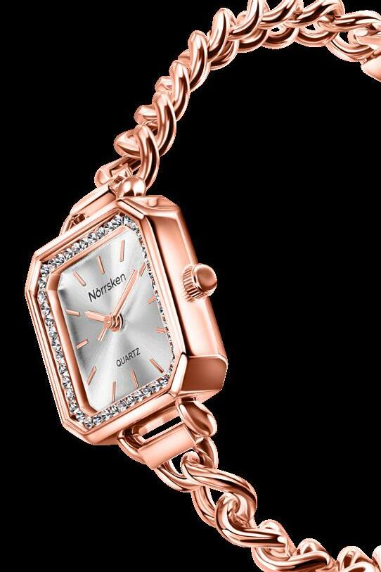 S elegantnom narukvicom u obliku masivnog lančića boje romantičnog ružičastog zlata i kvadratnim brojčanikom ukrašenim Preciosa kristalima, ovo je savršeni poklon za posebnu osobu.