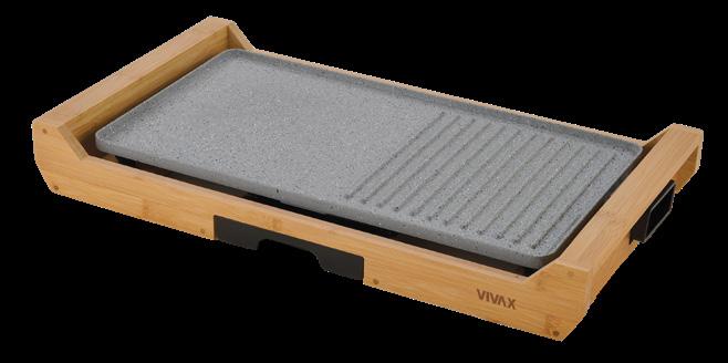 snaga 1800 W, dimenzije površine za pečenje 43 x 23 cm, kombinacija rebraste i glatke površine, termostat za podesivu temperaturu pečenja, odvojiva ploča za pečenje, odvojiva posuda za masnoću, kućište od bambusa hladno na dodir, mramorni premaz 1 kom